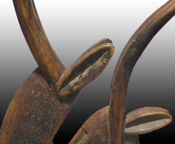 アフリカの彫刻の中でもっとも有名な、玲羊をかたどった彫像チワラ(雌雄ペア)です。
