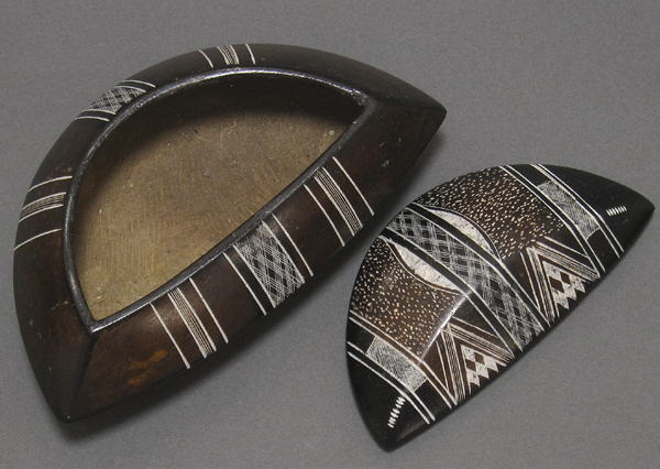 でとれたソープストーンを彫刻・彩色してふた付きの小物入れに仕上げました。