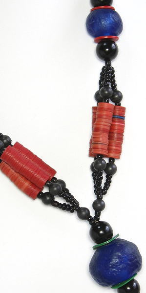 ディスクビーズ、シードビーズなど何種類ものビーズを組み合わせて作ったエスニックテイスト満載のアフリカンネックレスです。