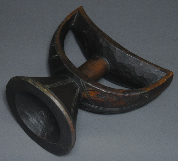 エチオピアをはじめとする東アフリカの牧畜民族の多くは複雑に結い上げた髪形を崩さないようこのような首にあてがうタイプの枕を用います。