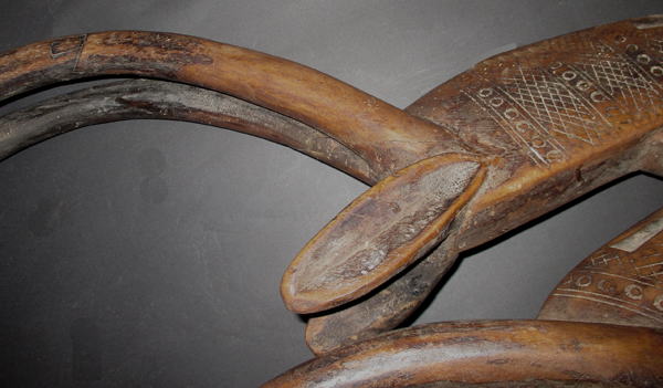 バンバラ民族の豊作祈願の祭礼時に、踊り手の頭上に取り付けられて使われます(→頭上面)。