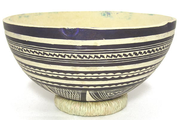 サヘル諸国(ニジェール、マリ、ブルキナファソ)で広く見られるタイプのボウル型ひょうたん容器。