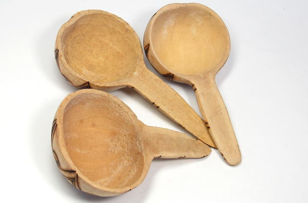 アフリカではさまざまな形のひょうたんが用いられている。球形,細首、ひょうたん型、ひしゃく型、円筒型...ひしゃく型ひょうたんを縦割りにして作るひょうたんひしゃくはアフリカ各地で使用されている。液体をすくったり粥を食べたりするのに使われていたが近年は安価で壊れにくいプラスチック製や金属製のひしゃく、スプーンに押され使用されることが少なくなってきている。 |