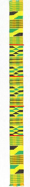 西アフリカの細幅木綿布はおおむね平織りの無地布で、織り耳を縫い合わせて一枚の幅広布とした後そこに泥染め、藍染め、ろうけつ染めなどの染色を施すことが多いが、民族によっては経織り(ブルキナファソの縞布:ファソ=ダンファニなど)、緯織り(フルベ布など)、つづれ織り(ケンテ布など)やかすり、縫い取り織り(ベナン手織り布など)などの技法を用いて独特な文様、縞模様を織り出した布もまた多く作られている。こうした布は何枚も縫い合わせて一枚の幅広布に仕立てたときに、一枚の布として大きな縞模様、市松模様、幾何文様などを描き出すようにつくられている。このように、細幅の布を何枚も縫い合わせて一枚の大きな布を作るという技法はいくつかの例外を除き西アフリカにしか見ることができない。 |