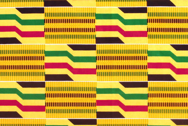 アフリカらしいカラフルな色と模様の取り合わせが魅力的なパーニュ=アフリカンプリント。この生地はアフリカ染織工芸の最高峰ケンテ布の色柄をモチーフとしてプリントしたものです。